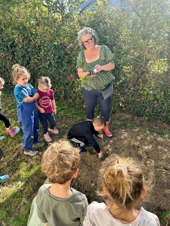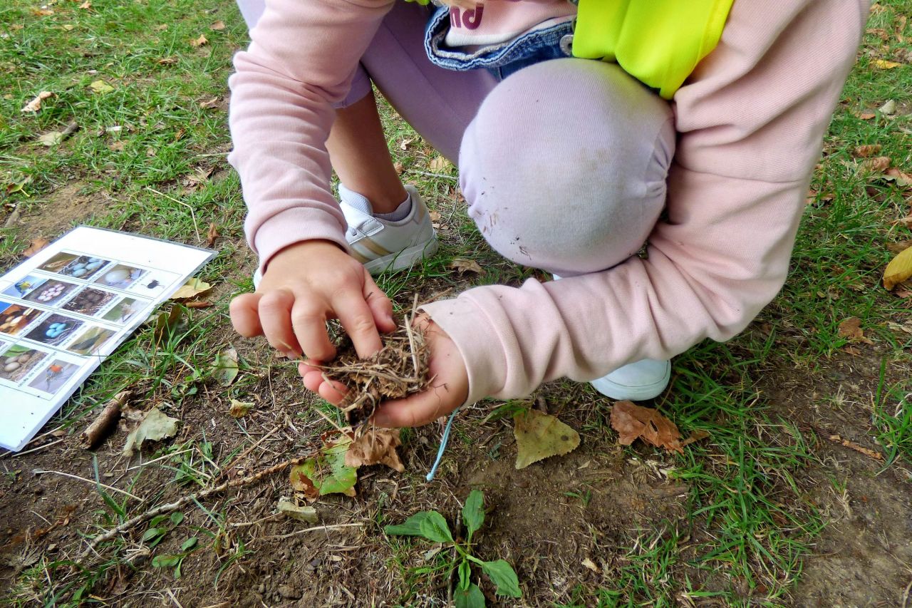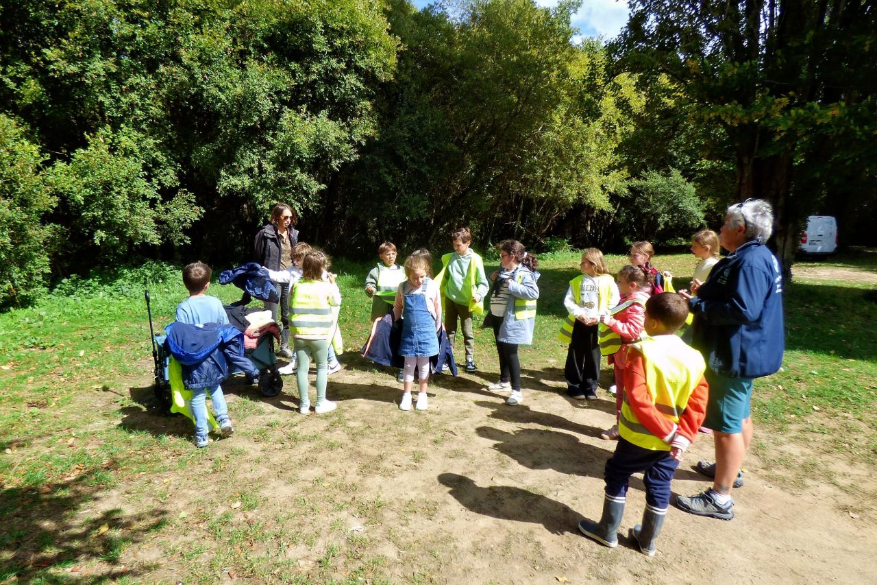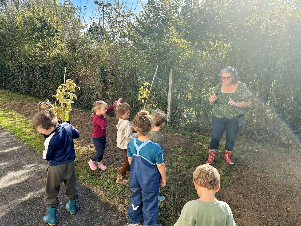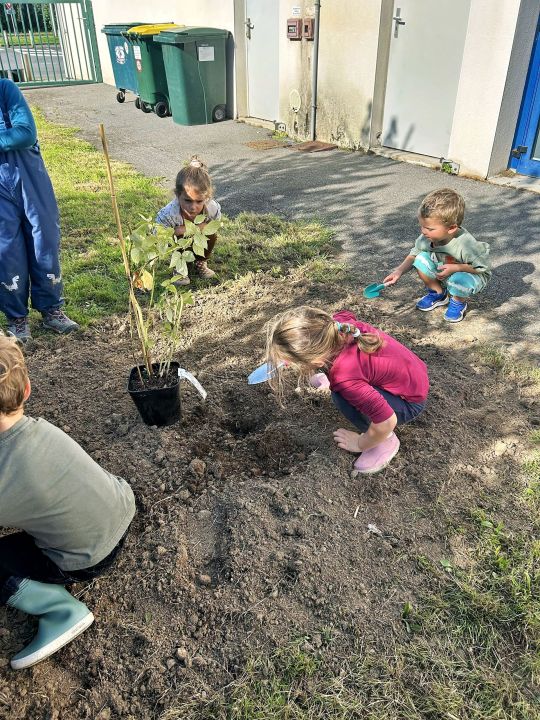C'est au tour des maternelles CP de sortir accompagnés de Maryline du CPIE Loire Océane pour observer les arbres qui nous entourent . Ils ont pu observer les formes de différents arbres , toucher les écorces , la mousse sur les troncs , ramasser des fruits , des graines .