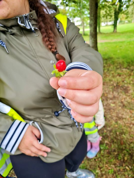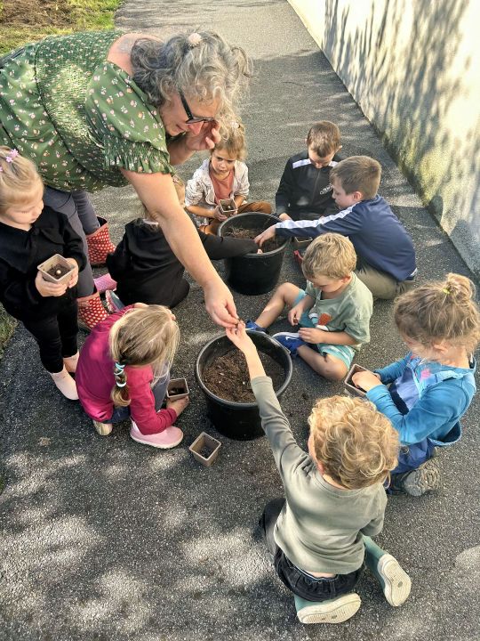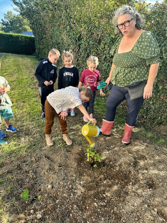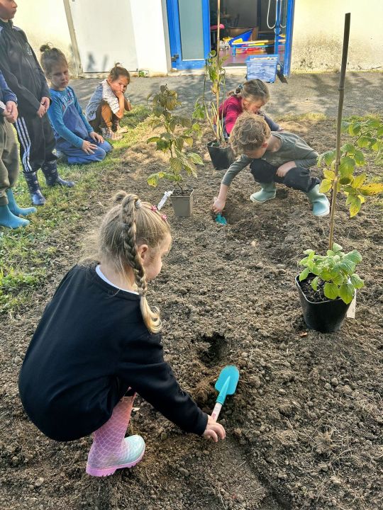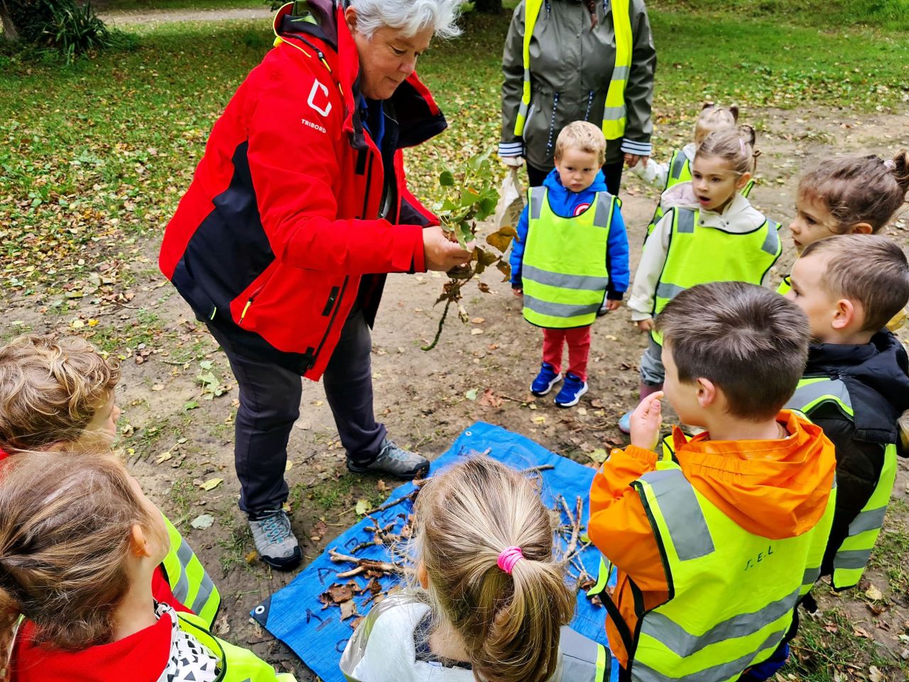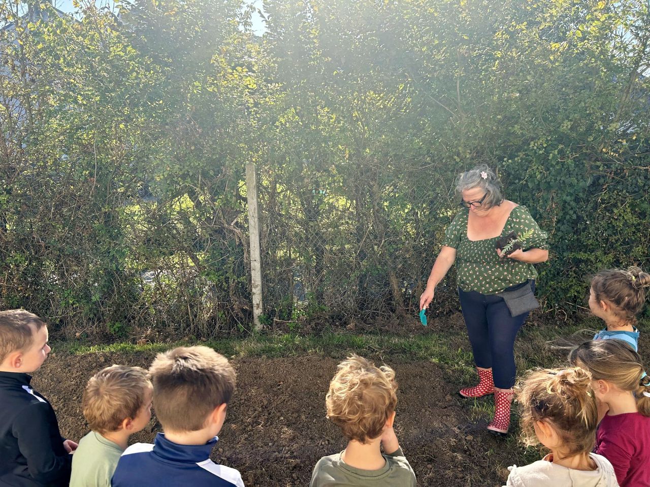 C'est au tour des maternelles CP de sortir accompagnés de Maryline du CPIE Loire Océane pour observer les arbres qui nous entourent . Ils ont pu observer les formes de différents arbres , toucher les écorces , la mousse sur les troncs , ramasser des fruits , des graines .