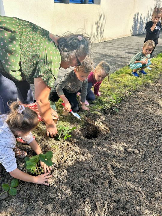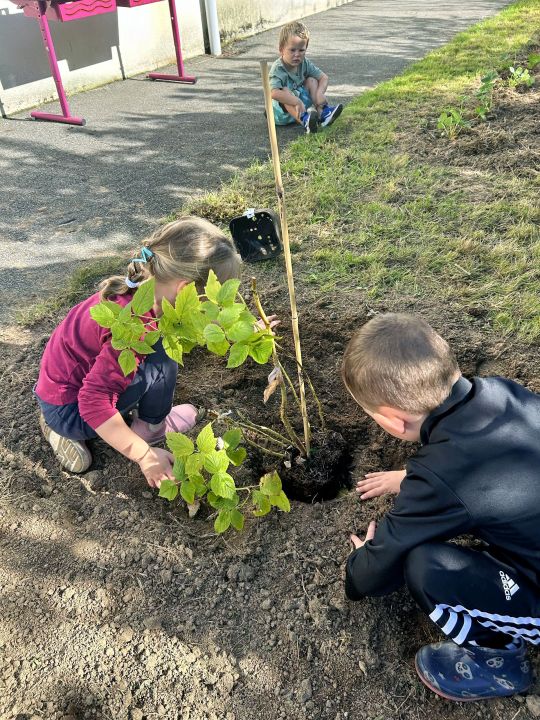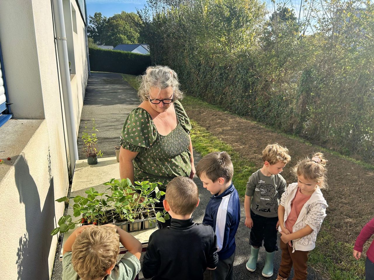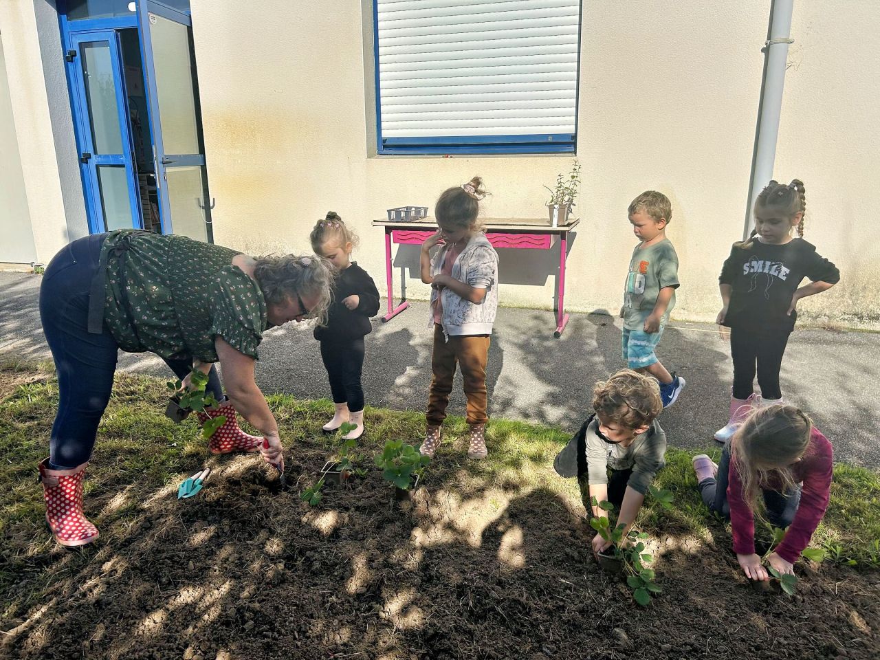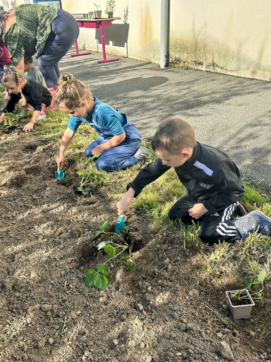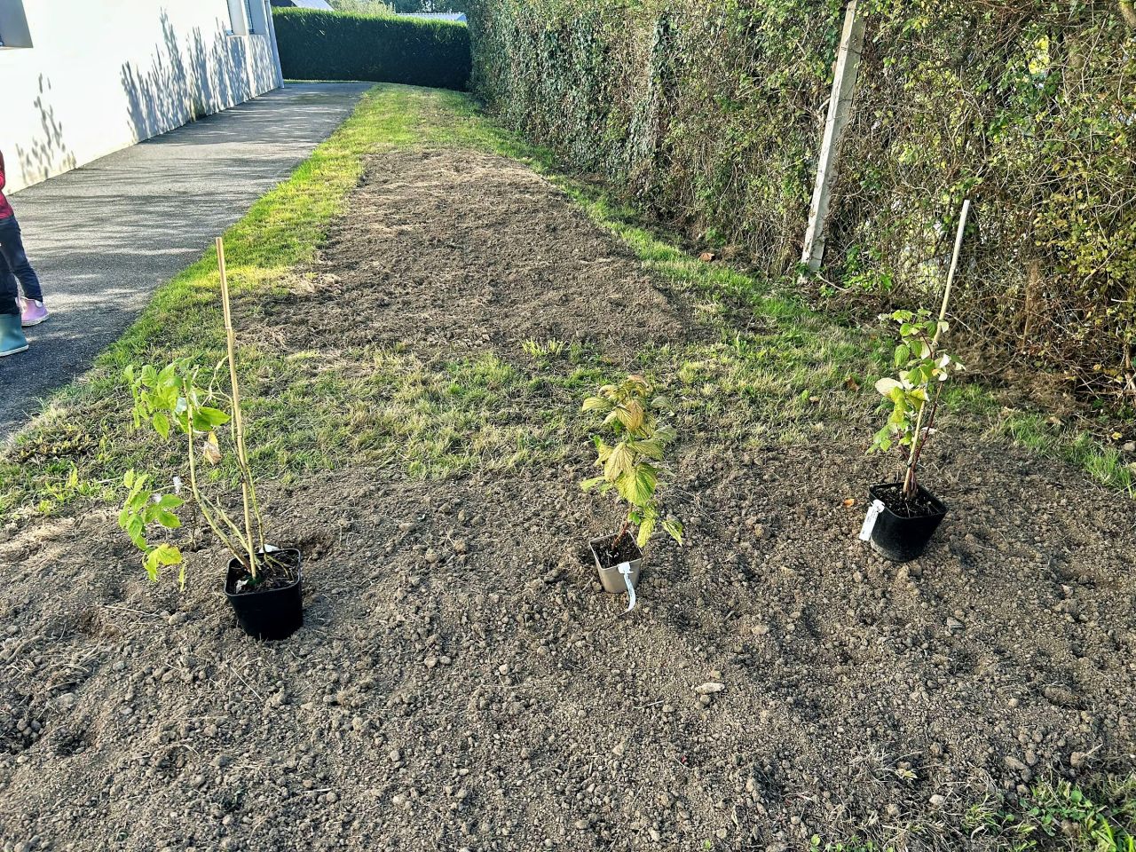 Ca y est le jardin est commencé !!!!! Nous avons planté des framboisiers , des fraisiers , un plant de menthe et un artichaut .