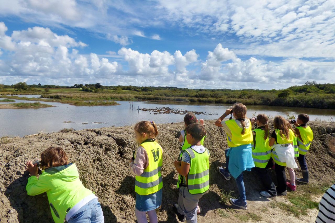 Accompagnés de Maryline Heinry du CPIE Loire Océane , les élèves de CE CM sont sortis pour observer les oiseaux .
