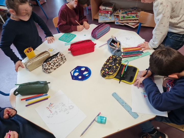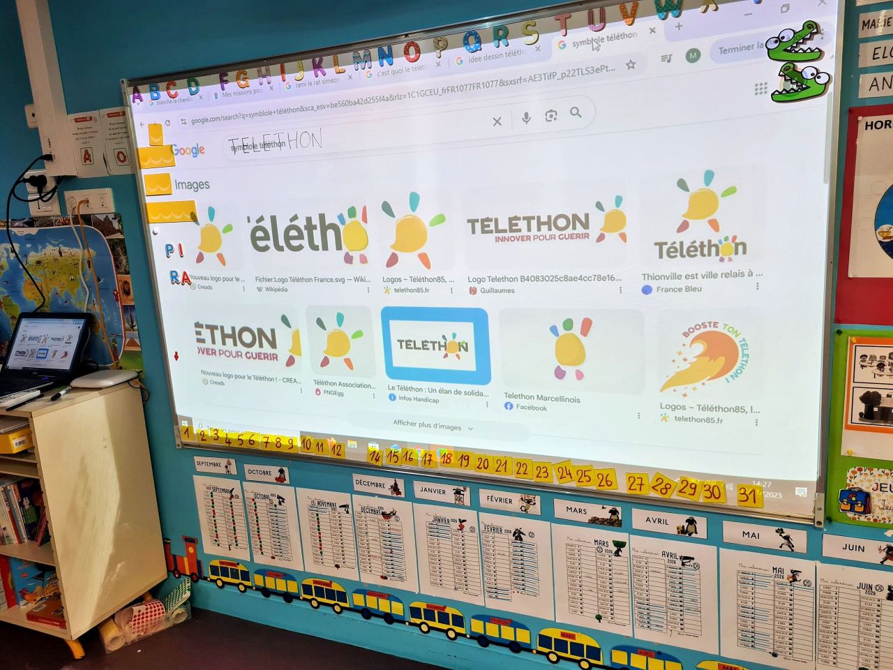 Après avoir regardé ' un jour , une actu' 'c'est quoi le téléthon ? ' , après avoir discuté ensemble de ce sujet , et lu ensemble le programme de la journée qui sera organisée à Pénestin le décembre prochain , les enfants à partit du CP ont commencé à dessiné .